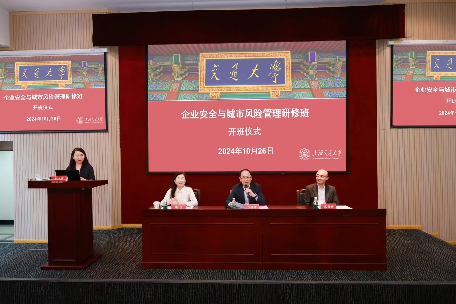 10月26日上午,企业安全与城市风险管理研修班开班仪式在上海交大徐汇校区新上院N100号报告厅举行。上海交通大学党委副书记周承,上海市应急管理局党委委员、副局长沈伟忠,上海新安院院长武景林,上海交通大学sjb世俱杯中国官网入口副院长项玉出席开班仪式,与全体学员合影留念。
