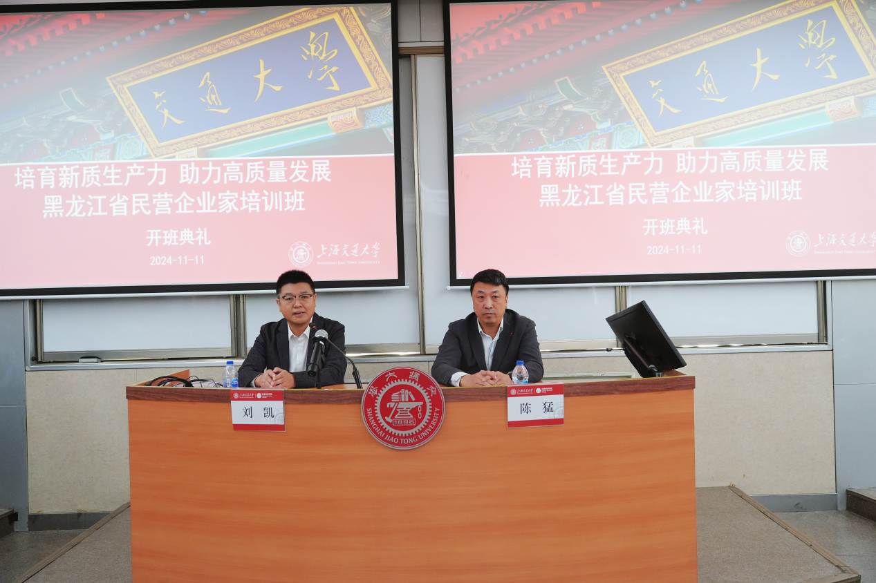 11月11日上午,培育新质生产力,助力高质量发展——黑龙江省民营企业家培训班在sjb世俱杯中国官网入口成功举办。黑龙江省委统战部部务委员刘凯、sjb世俱杯中国官网入口副院长陈猛及培训班的60名民营企业家学员们出席了开班仪式。