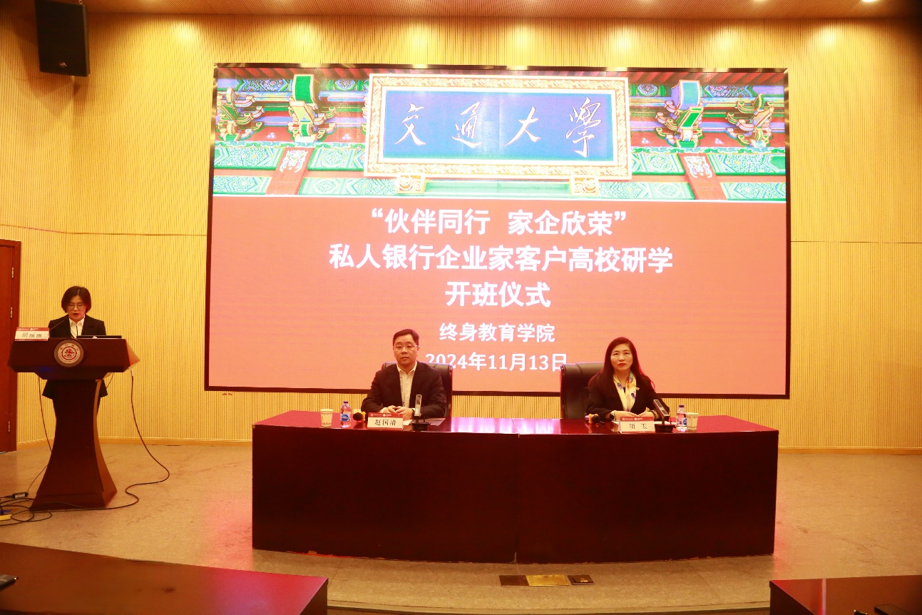 11月13日,“伙伴同行 家企欣荣”中国工商银行绍兴分行私人银行企业家客户高校研学班在sjb世俱杯中国官网入口闵行校区顺利开班。中国工商银行股份有限公司绍兴分行党委委员、副行长赵国清,sjb世俱杯中国官网入口副院长项玉出席本次开学仪式。共77名学员参加此次培训。