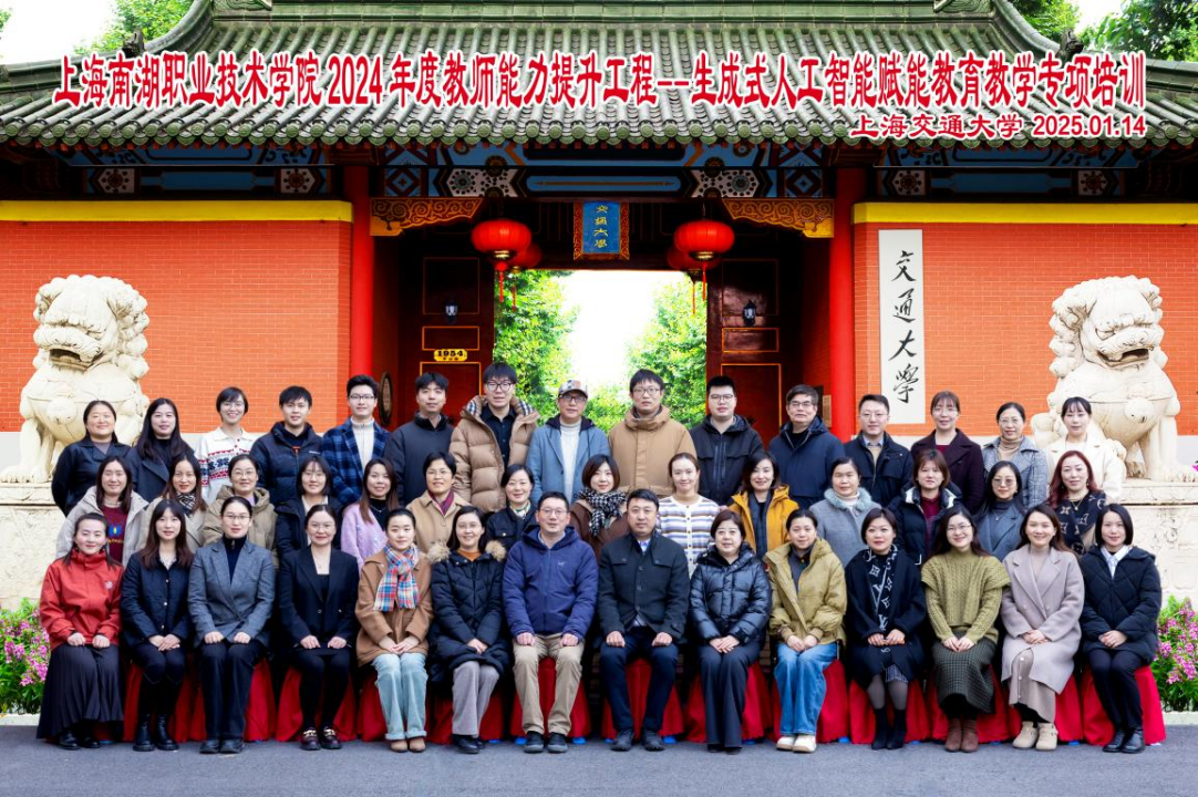 1月14日,上海南湖职业技术学院2024年度教师能力提升工程——首期生成式人工智能赋能教育教学专项培训结业仪式在sjb世俱杯中国官网入口成功举行。