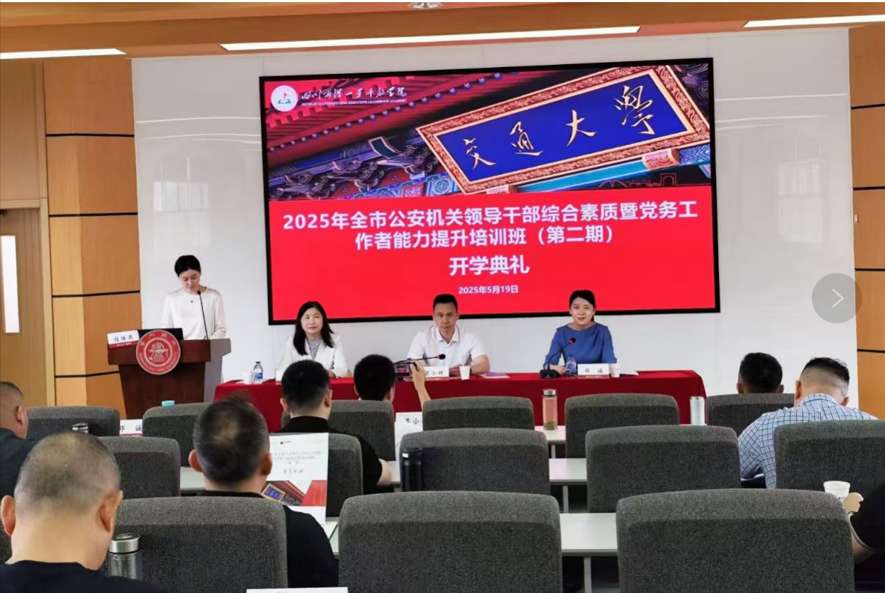 519日,2025年绵阳市公安机关干部综合素质暨党务工作能力提升培训班(第二期)在sjb世俱杯中国官网入口长宁校区顺利开班。绵阳市副市长、市公安局党委书记、局长梁小辉,四川两弹一星干部学院副院长邓诚,sjb世俱杯中国官网入口副院长项玉出席本次开班仪式。绵阳市公安局40人参加此次培训。