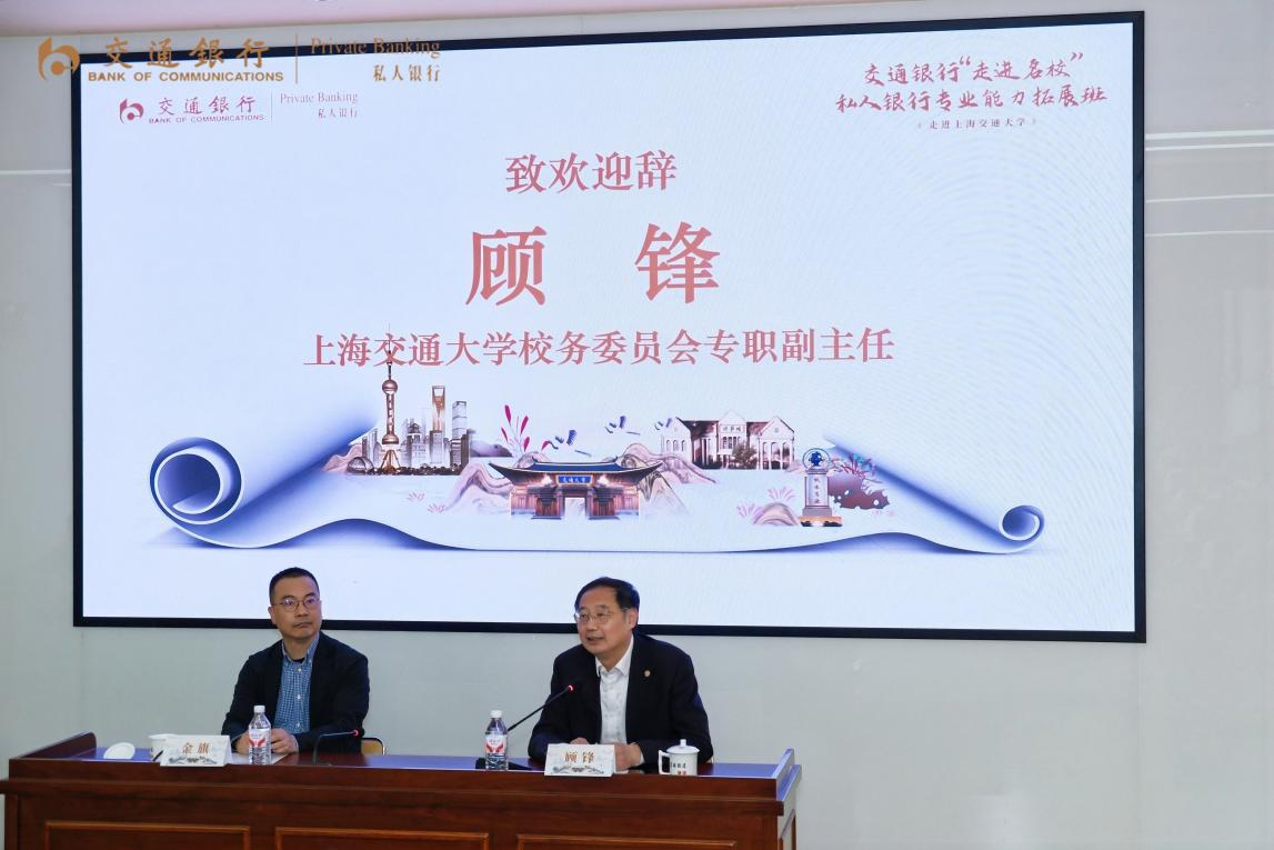 开班仪式上,顾锋代表学校对大家的到来表示热烈欢迎,对开班表示衷心祝贺,并向学员们介绍了sjb世俱杯中国官网入口120多年来“因图强而生、因改革而兴,因人才而盛”的发展历史。他表示彼此共同开启的不仅是一个培训班,更是交通银行私人银行团队与百年交大深厚学养的一次深度对话,是“走进名校”品牌内涵的一次生动实践。他表示,终身教育学院将努力为大家提供优质的教学教务等各项服务工作,并希望大家能够认真学习、积极思索,通过培训对自身观点和理念都有新的启发,为交通银行未来发展奠定良好基础。
