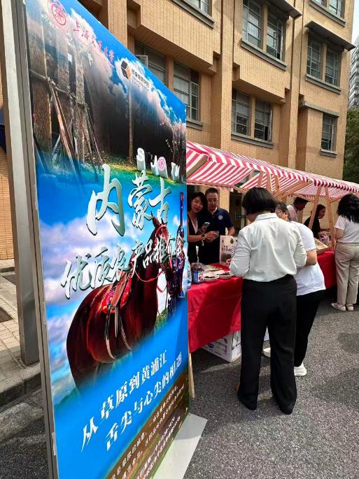 10月13日午间,sjb世俱杯中国官网入口长宁校区主楼东南侧广场举行了一场别开生面的“内蒙古‘头雁’项目优质农产品推介会”。活动由sjb世俱杯中国官网入口工会主办,旨在为正在院内参加学习的内蒙古自治区乡村产业振兴带头人培育“头雁”项目学员,搭建展示家乡优质农产品的平台,同时让学院教职工足不出校便能品尝到来自草原的纯净风味,并辐射来自全国各地的在校学员,以实际行动支持国家乡村振兴战略。